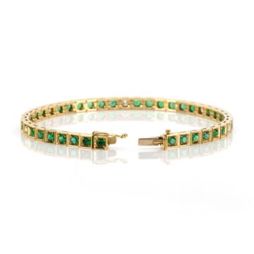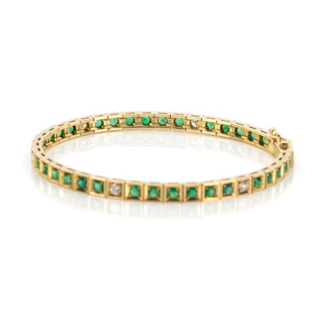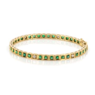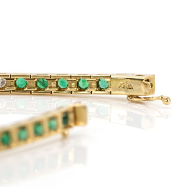 Amsterdam Sauer, Brasilien, 750 Gelbgold, punziert, dazu Juwelierspunze, 5 Diamanten im Brillantschliff, gesamt 0,38 ct, F-G, vvs, 37 Smaragde um Rundschliff, gesamt 2,64 ct, Länge 18,5 cm, Gewicht ca. 19,4 g, Original-Box, -Rechnung und Zertifikat von 1993 anbei