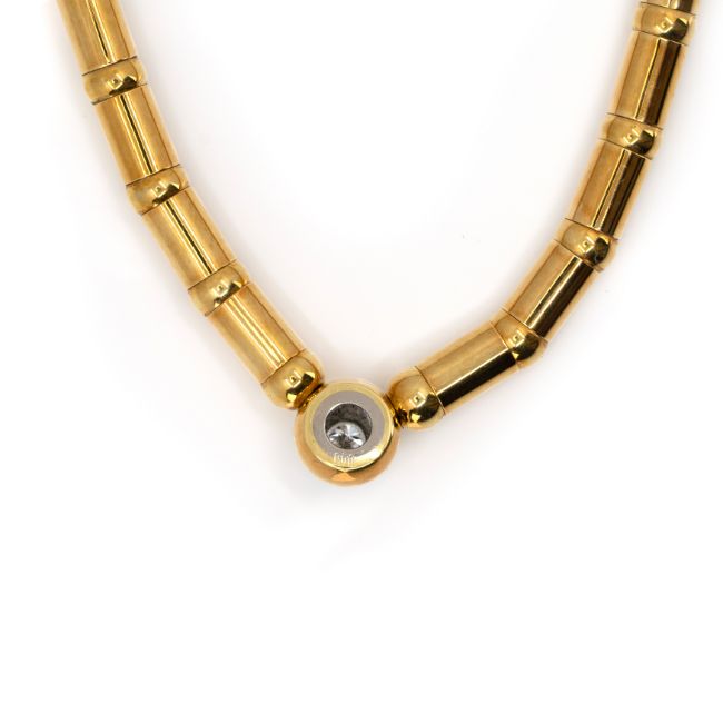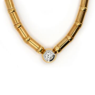 Chopard, Frankreich, 750 Gelb- und Weißgold, punziert, nummeriert, Seriennr. 2157621, Diamant im Brillantschliff, 0,50 ct, G, vvs, kleiner Herzanhänger mit Markenbezeichnung, Länge 43 cm, Gewicht 66,1 g, Original-Box, Umverpackung und Papiere von 2001 anbei