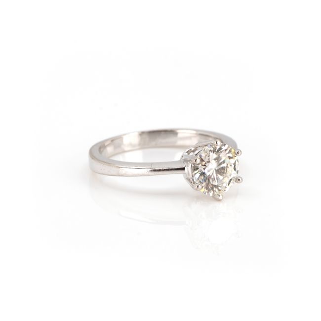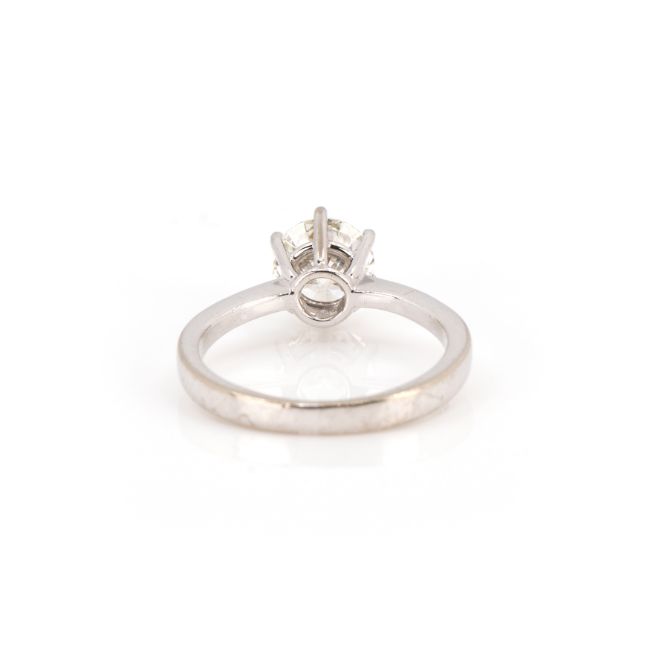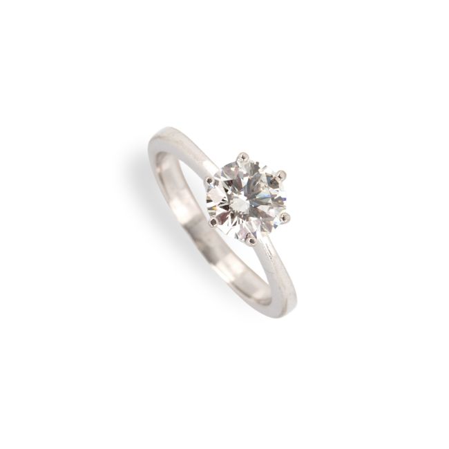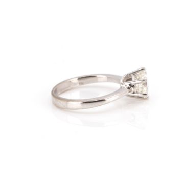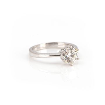 750 Weißgold, punziert, Diamant im Brillantschliff, 1,36 ct, I, vs2, Proportionen sehr gut, Schliffausführung sehr gut, Fluoreszenz leicht, RW 53, Gewicht ca. 3,9 g, DPL Expertise von 2006 anbei