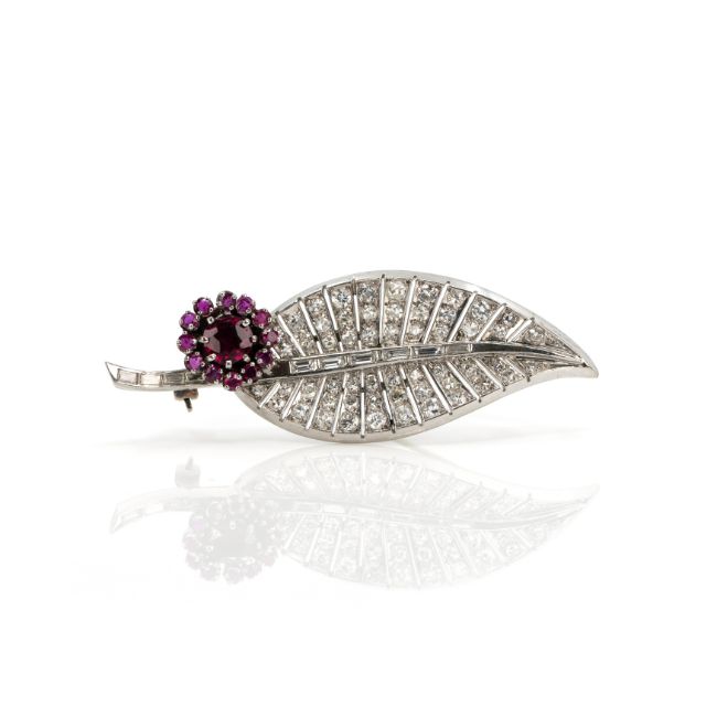 Diamant-Rubinbrosche in Blattform