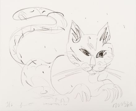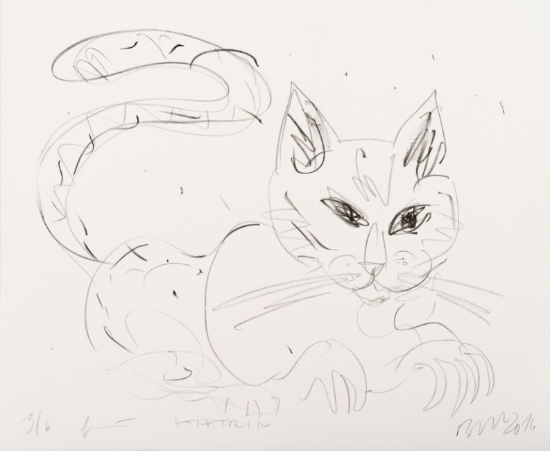 Wildkatze, Lithografie auf Papier, 29,5 cm x 34,5 cm Blattmaß, signiert, 2016 datiert, 3/6 nummeriert und 'für Katrin' gewidmet