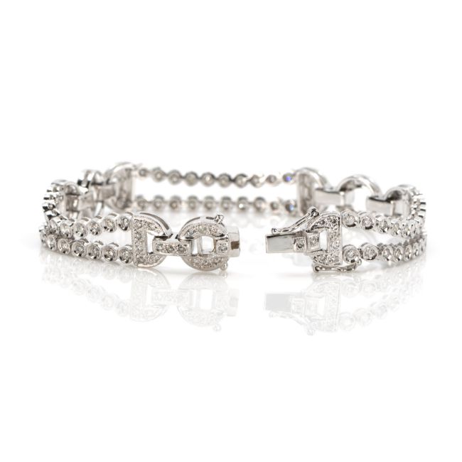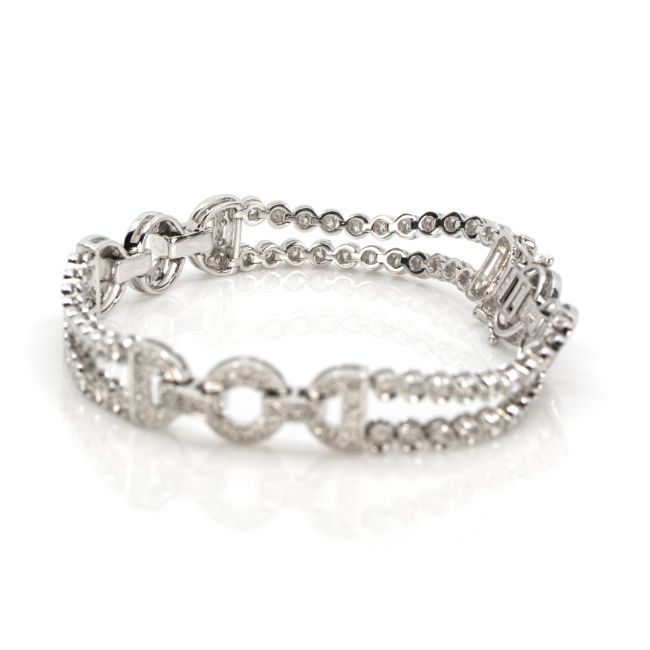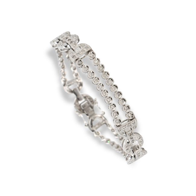 585 Weißgold, punziert, 132 Diamanten im Brillantschliff, gesamt 2,24 ct, punziert, H-J, si-pi, Länge 18 cm, Breite 1 cm, Gewicht ca. 22 g
