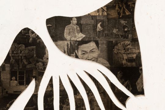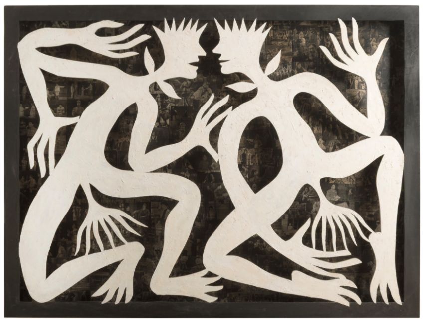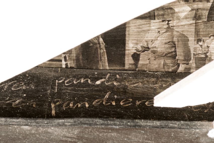 Ohne Titel, Holzrelief mit Collage, Mischtechnik und Fotografien, 100 x 133 x 8 cm Werkmaß, verso signiert, 2.5.1998 datiert, partiell minimal berieben