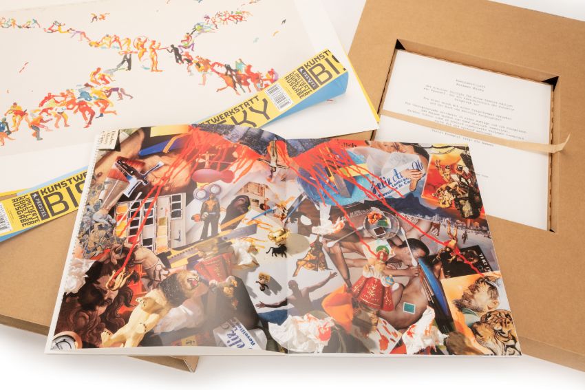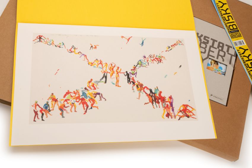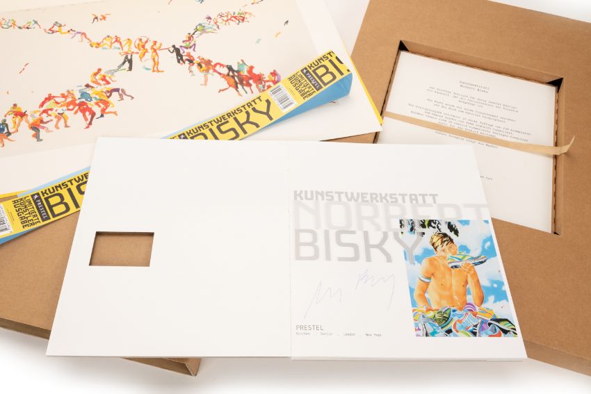 'Kunstwerkstatt', Kassette mit Buch und einem farbigen Faksimiledruck auf leichtem Karton, Vorzugsausgabe, 34 cm x 53 cm Blattmaß, 26 cm x 22 cm Buchmaß, Faksimile im Druck signiert, 10.7.2007 datiert, Trockenstempel 'Kunstwerkstatt Norbert Bisky', Buch signiert, im Impressum (Kassette), 137/200 nummeriert, Prestel Verlag, München (Hrsg.)