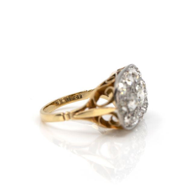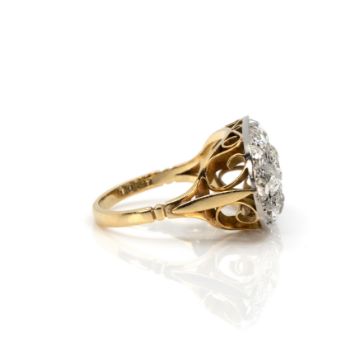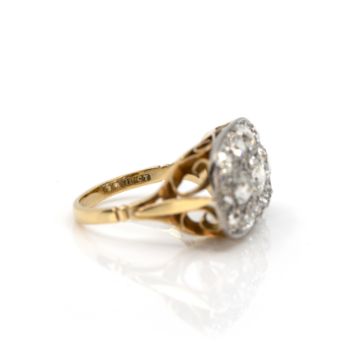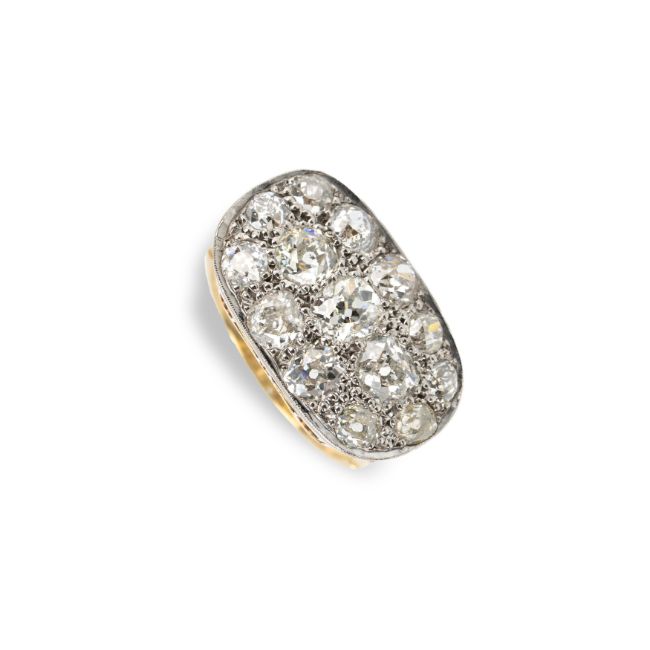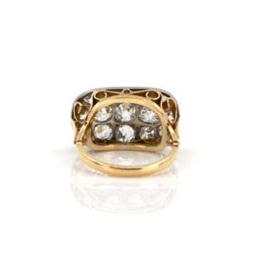 Art déco Diamantring750 Gelb- und Weißgold, punziert, 14 Diamanten im Altschliff, gesamt ca. 3,45 ct, H-I, pi, RW 58, Gewicht ca. 6,1 g