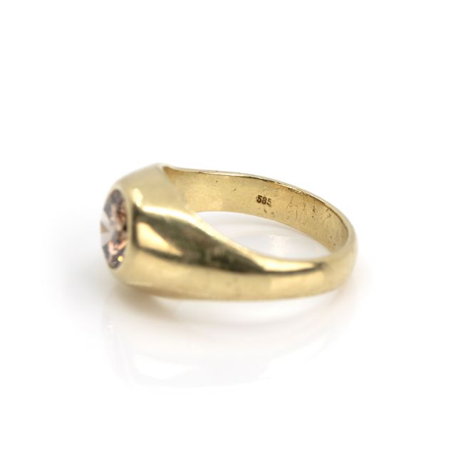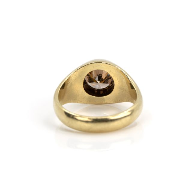 585 Gelbgold, punziert, Diamant im Brillantschliff, ca 1,50 - 1,55 ct, cognacfarben/orange-brown, si, RW 57, Gewicht ca. 10 g