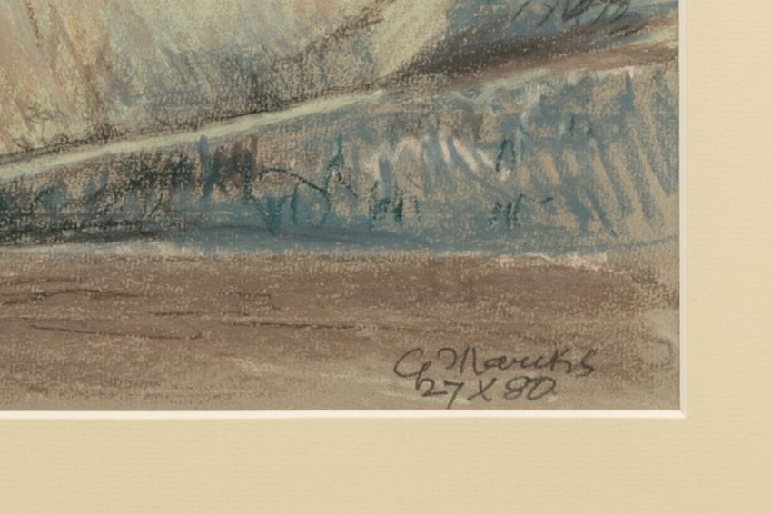 Landschaft mit Pferd, Pastell auf Papier, 30 cm x 45,5 cm Sichtmaß, signiert, 27.X.80 datiert, montiert