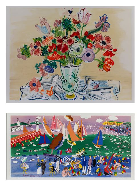 2 pieces, Anemones and Bay of Sainte-Adresse, lithographs interpreting the original works (1942 and 1935), 54 cm × 72 cm and 43 cm × 83.5 cm image dimensions, signed in print, lithographs by J. Sabatier and R. Leo, each with dry stamp 'idem ... paris' and the ADAGP image database (Paris 2004), numbered 9/250 and 167/250
