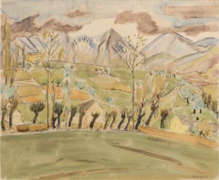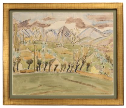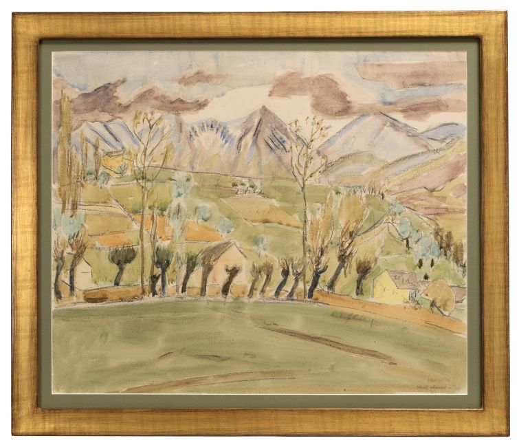 'Hochebene', Mischtechnik und Aquarell auf Papier, 51,5 cm x 61,5 cm Sichtmaß, signiert, 26 datiert, betitelt, unter Passepartout montiert, leicht gewellt, Provenienz: Nachlass Erich Heckel (bis 1983), Galerie Theo Hill, Köln. Das Aquarell ist im Nachlass des Künstlers registriert. Wir danken dem Nachlass Erich Heckel, Hemmenhofen, für die wissenschaftliche Unterstützung und den Hinweis, dass das Aquarell auf Heckels erste große Frankreichreise zurückgeht.